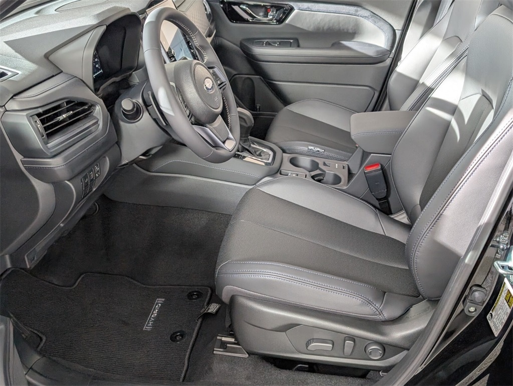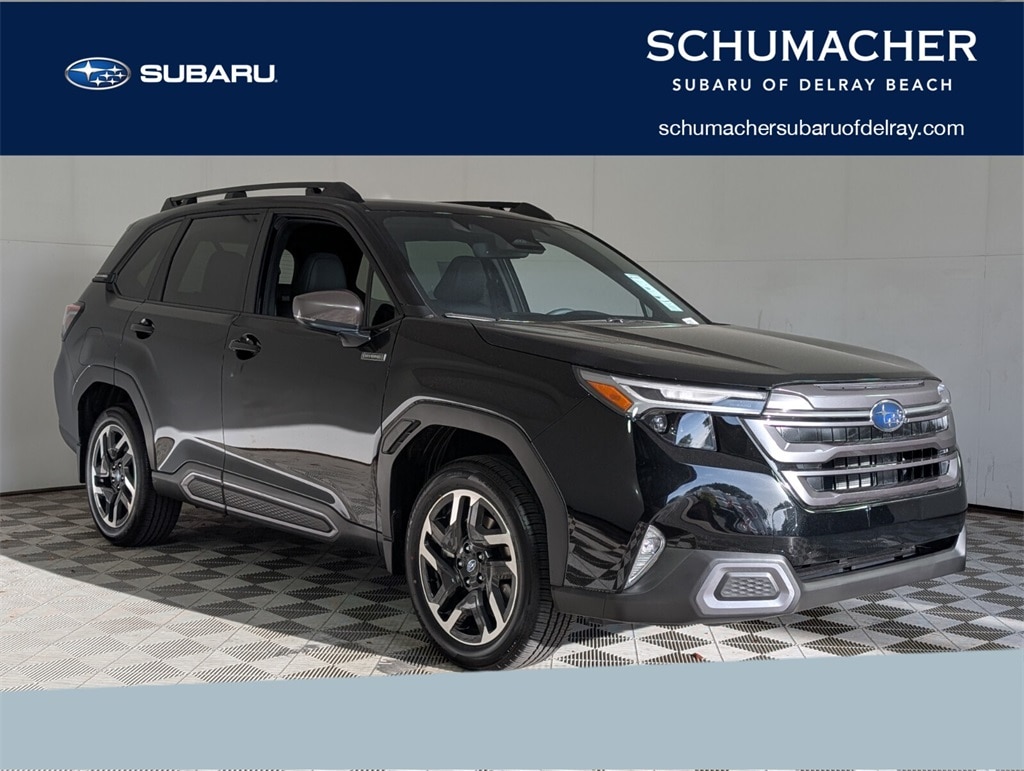 2025 Subaru Forester Hybrid Limited 2.5L 4-Cylinder DOHC 16V AWD Crystal Black Silica 11 Speakers, 4-Wheel Disc Brakes, ABS brakes, Air Conditioning, Alloy wheels, AM/FM radio: SiriusXM with 360L, Anti-whiplash front head restraints, Auto High-beam Headlights, Auto-Dimming Mirror with Compass and HomeLink, Automatic temperature control, Brake assist, Bumpers: body-color, Cargo Net, Cargo Tray, Center Console Tray, Compass, Door Projector Lights, Driver door bin, Driver vanity mirror, Dual front impact airbags, Dual front side impact airbags, Electronic Stability Control, Emergency communication system: MySubaru Safety (3-year free trial), Exterior Parking Camera Rear, Four wheel independent suspension, Front anti-roll bar, Front Bucket Seats, Front Center Armrest, Front dual zone A/C, Front fog lights, Front reading lights, Fully automatic headlights, harman/kardon® Speakers, Heated door mirrors, Heated Front Bucket Seats, Heated front seats, Illuminated entry, Knee airbag, LED Upgrade, Low tire pressure warning, Navigation system: TomTom Navigation w/what3words, Occupant sensing airbag, Outside temperature display, Overhead airbag, Overhead console, Panic alarm, Passenger door bin, Passenger vanity mirror, Power door mirrors, Power driver seat, Power Liftgate, Power moonroof: Panoramic, Power passenger seat, Power steering, Power windows, Radio data system, Radio: Subaru 11.6" Multimedia Navigation System, Rear anti-roll bar, Rear seat center armrest, Rear window defroster, Rear window wiper, Remote keyless entry, Security system, Speed control, Speed-sensing steering, Split folding rear seat, Spoiler, Standard Model, StarTex Upholstery, Steering wheel mounted audio controls, Tachometer, Telescoping steering wheel, Tilt steering wheel, Traction control, Trip computer, Turn signal indicator mirrors, Variably intermittent wipers, Wheels: 18" x 7.0 J Dark Metallic Aluminum-Alloy.