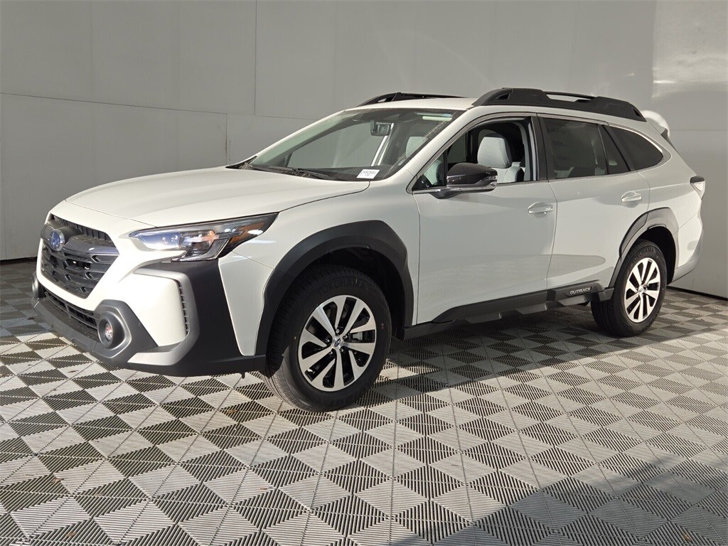 2025 Subaru Outback Premium 2.5L 4-Cylinder DOHC 16V AWD Crystal White Pearl 4-Wheel Disc Brakes, 6 Speakers, ABS brakes, Air Conditioning, Alloy wheels, AM/FM radio: SiriusXM with 360L, Apple CarPlay & Android Auto, Auto High-beam Headlights, Auto-Dimming Mirror w/Compass & HomeLink, Automatic temperature control, Blind Spot Detection (BSD), Brake assist, BSD & RCTA & Keyless Access & Push Button Start, Bumpers: body-color, Cargo Net, Cloth Upholstery, Door Projector Light, Driver door bin, Driver vanity mirror, Dual front impact airbags, Dual front side impact airbags, Electronic Stability Control, Emergency communication system: MySubaru Safety (3-year free trial), Exterior Parking Camera Rear, Four wheel independent suspension, Front anti-roll bar, Front Bucket Seats, Front Center Armrest w/Storage, Front dual zone A/C, Front fog lights, Front reading lights, Fully automatic headlights, Hands-Free Power Rear Gate, Heated door mirrors, Heated Front Bucket Seats, Heated front seats, Illuminated entry, Keyless Access w/Push Button Start, Knee airbag, Leather Shift Knob, Leather steering wheel, LED Upgrade, Low tire pressure warning, Occupant sensing airbag, Outside temperature display, Overhead airbag, Overhead console, Panic alarm, Passenger door bin, Passenger vanity mirror, Power door mirrors, Power driver seat, Power Moonroof, Power steering, Power windows, Radio: Subaru 11.6" Multimedia Plus System, Radio: Subaru 11.6" Multimedia System w/Navigation, Rear anti-roll bar, Rear Cross Traffic Alert (RCTA), Rear Seat Back Protector, Rear seat center armrest, Rear window defroster, Rear window wiper, Remote keyless entry, Roof rack, Security system, Speed control, Speed-sensing steering, Split folding rear seat, Spoiler, Steering wheel mounted audio controls, Tachometer, Telescoping steering wheel, Tilt steering wheel, Traction control, Trip computer, Turn signal indicator mirrors, Variably intermittent wipers, Wheels: 17" x 7J Black Aluminum-Alloy.