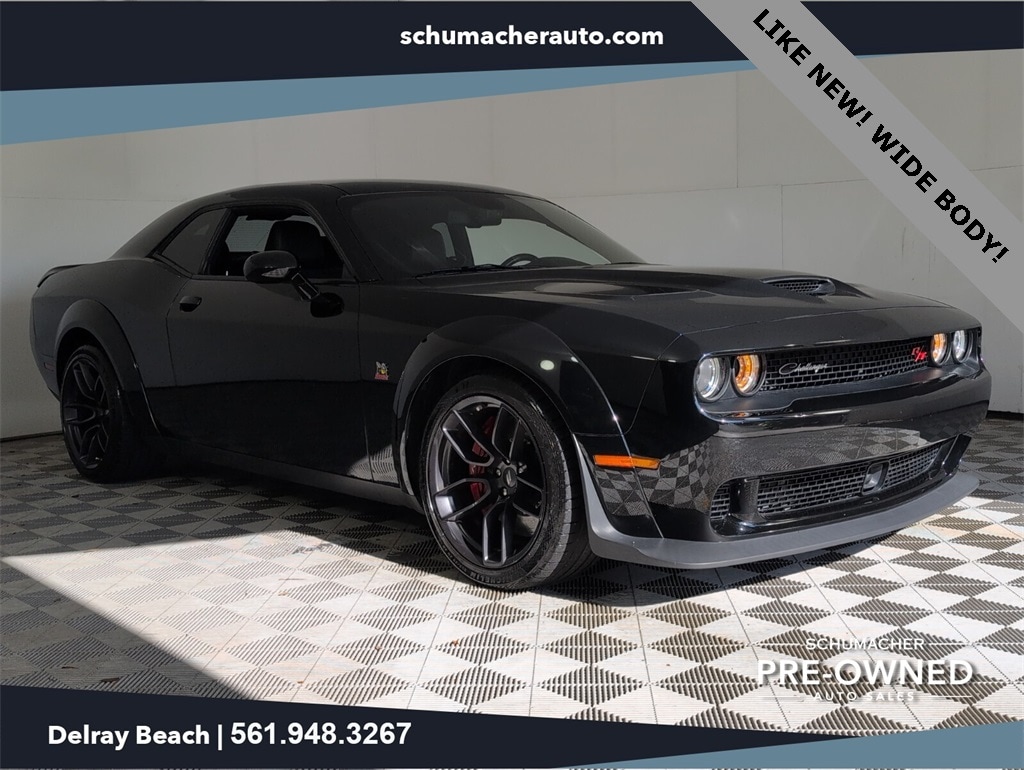 2021 Dodge Challenger R/T Scat Pack Widebody SRT HEMI 6.4L V8 MDS 8-Speed Automatic RWD Pitch Black Clearcoat NEED DIRECT AND QUICKER ASSISTANCE? DIAL 561.454.1848 TO SPEAK TO A LIVE SALES CONSULTANT, Ready For Immediate Delivery, Passed Dealer Inspection, Vehicle Detailed, Fresh Oil Change, 1-Yr SiriusXM Guardian Trial, 230MM Rear Axle, 3.09 Rear Axle Ratio, 4-Wheel Disc Brakes, 4G LTE Wi-Fi Hot Spot, 5-Year SiriusXM Traffic Service, 5-Year SiriusXM Travel Link Service, 506 Watt Amplifier, 6 Speakers, 8.4" Touchscreen Display, 9 Amplified Speakers w/Subwoofer, ABS brakes, Adaptive Damping Suspension, Air Conditioning, Alloy wheels, Alpine Audio Group w/Subwoofer, AM/FM radio: SiriusXM, Anti-whiplash front head restraints, Apple CarPlay, Apple CarPlay/Android Auto, Auto High Beam Headlamp Control, Auto-dimming Rear-View mirror, Automatic temperature control, Blind Spot & Cross Path Detection, Brake assist, Brembo 6-Pot Fixed Front Caliper Brakes, Bumpers: body-color, Compass, Delay-off headlights, Door Trim Panel w/Ambient Lighting, Driver Convenience Group, Driver door bin, Driver vanity mirror, Dual front impact airbags, Dual front side impact airbags, Electronic Stability Control, Emergency communication system: SiriusXM Guardian, Flat-Bottom Steering Wheel, For Details, Visit DriveUconnect.com, Four wheel independent suspension, Front anti-roll bar, Front Bucket Seats, Front Center Armrest, Front dual zone A/C, Front fog lights, Front reading lights, Fully automatic headlights, Garage door transmitter, Google Android Auto, GPS Antenna Input, GPS Navigation, HD Radio, Heated door mirrors, Heated front seats, Heated Steering Wheel, Heated steering wheel, High-Intensity Discharge Headlamps, Illuminated entry, Integrated Center Stack Radio, Integrated Voice Command w/Bluetooth, Leather Shift Knob, Low tire pressure warning, Media Hub (2 USB, AUX), Outside temperature display, Overhead airbag, Overhead console, Panic alarm, ParkView Rear Back-Up Camera, Passenger door bin, Passenger vanity mirror, Performance Shift Indicator, Plus Package, Power door mirrors, Power driver seat, Power Multi-Function Foldaway Mirrors, Power steering, Power Tilt/Telescope Steering Column, Power windows, Premium-Stitched Dash Panel, Quick Order Package 24N R/T Scat Pack Widebody, Radio data system, Radio: Uconnect 4C Nav w/8.4" Display, Radio: Uconnect 4C w/8.4" Display, Radio/Driver Seat/Mirrors Memory, Rain Sensitive Windshield Wipers, Rear anti-roll bar, Rear reading lights, Rear seat center armrest, Rear window defroster, Red Brake Calipers, Remote keyless entry, Scat Pack Logo Houndstooth Seat, Security system, Shark Fin Antenna, SiriusXM Satellite Radio, SiriusXM Traffic Plus, SiriusXM Travel Link, Speed control, Speed-sensing steering, Split folding rear seat, Spoiler, Sport steering wheel, SRT Performance Spoiler, Steering wheel mounted audio controls, Surround Sound, Tachometer, Technology Group, Telescoping steering wheel, Tilt steering wheel, Traction control, Trip computer, USB Host Flip, Variably intermittent wipers, Wheels: 20" x 11.0" Devil's Rim Aluminum, Widebody Competition Suspension, Widebody Fender Flares.